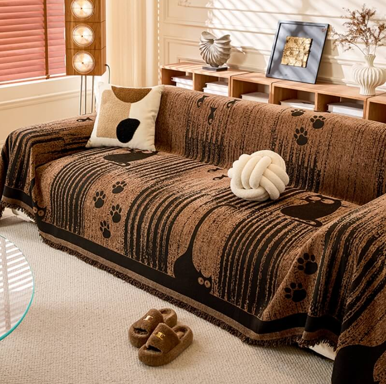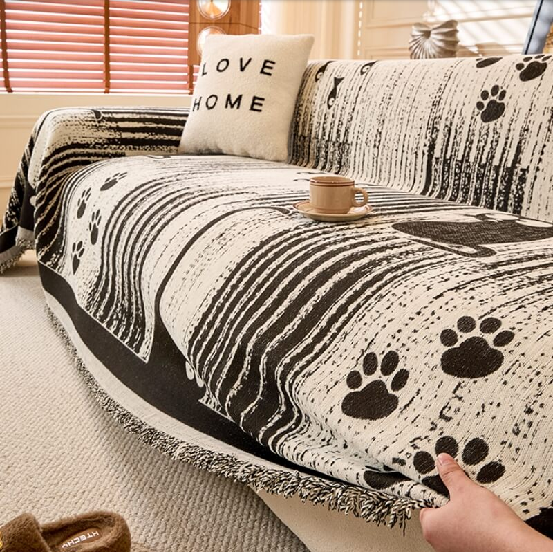 ™Kisui | כיסוי ספה מצ'ניל עם הדפס כפות – עמיד בפני שריטות, חמים ואלגנטי
